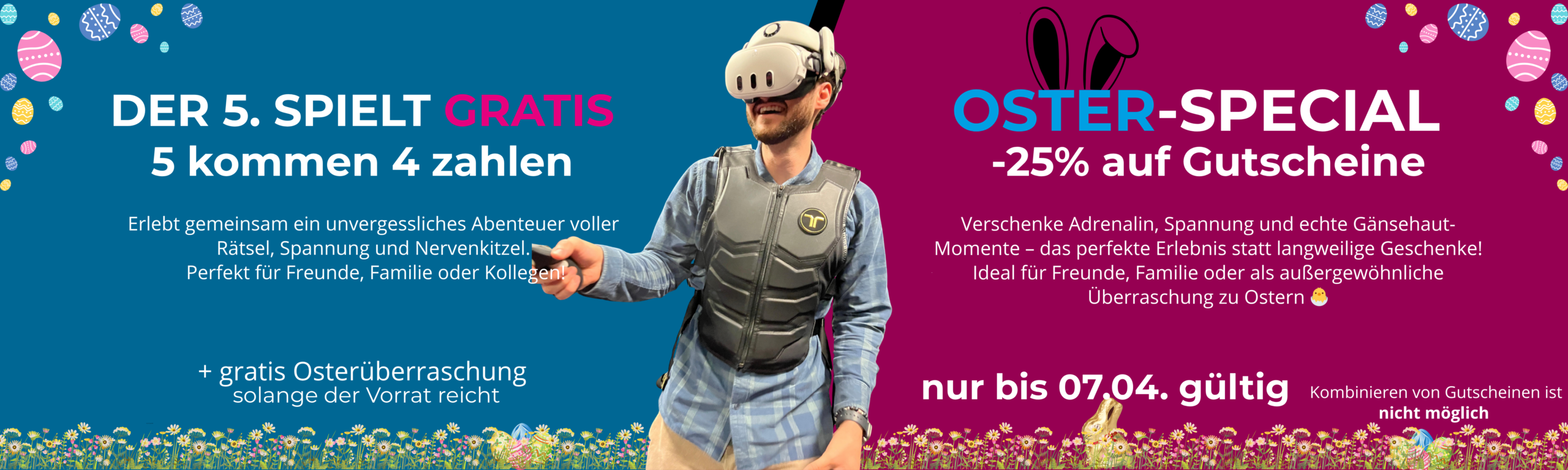 Steigere den Spaßfaktor deiner Geburtstagsfeier! Feiere bei Reality Escape und erlebe einen Tag, den du nie vergessen wirst: Taucht in atemberaubende virtuelle Welten ein, meistert aufregende Herausforderungen und sammelt unvergessliche Momente mit deinen Freunden.
